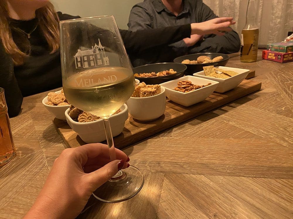 Lekkere hapjes en een wijntje erbij.