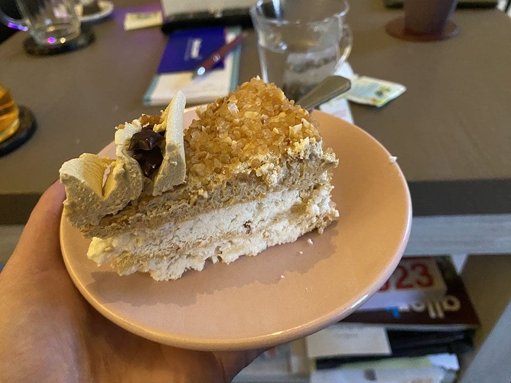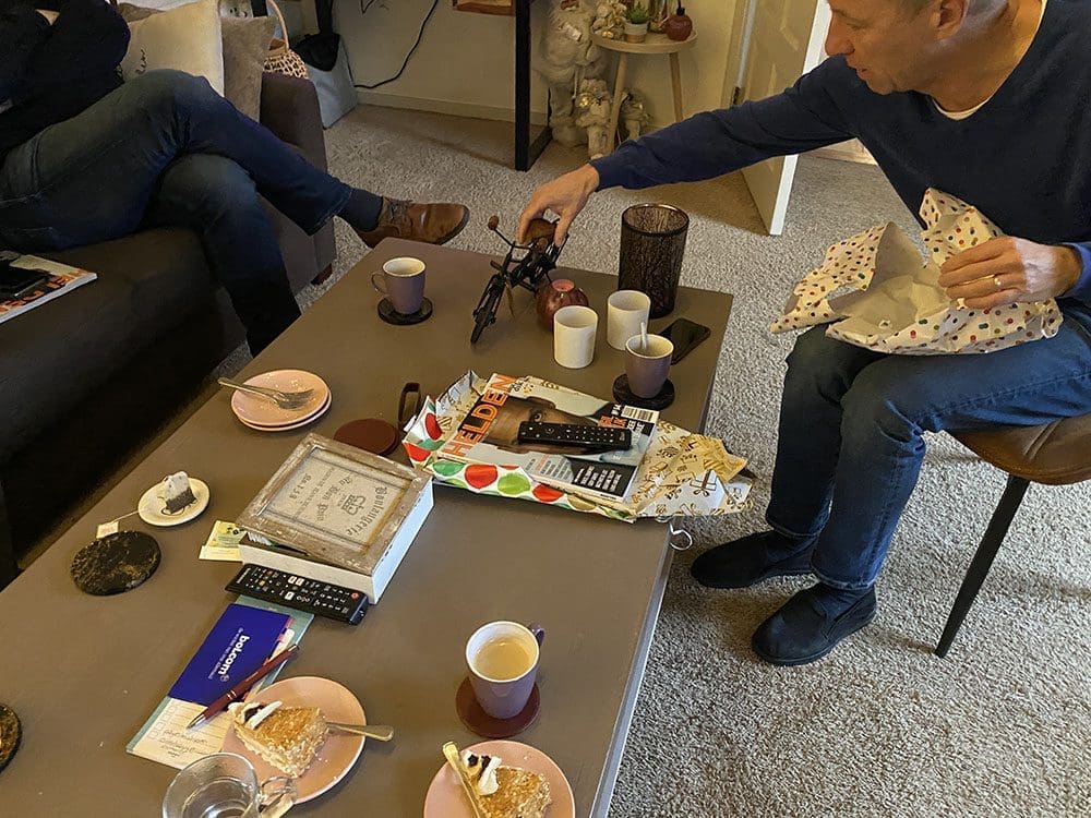 Een lekker taartje eten en mijn tante en oom waren er ook.