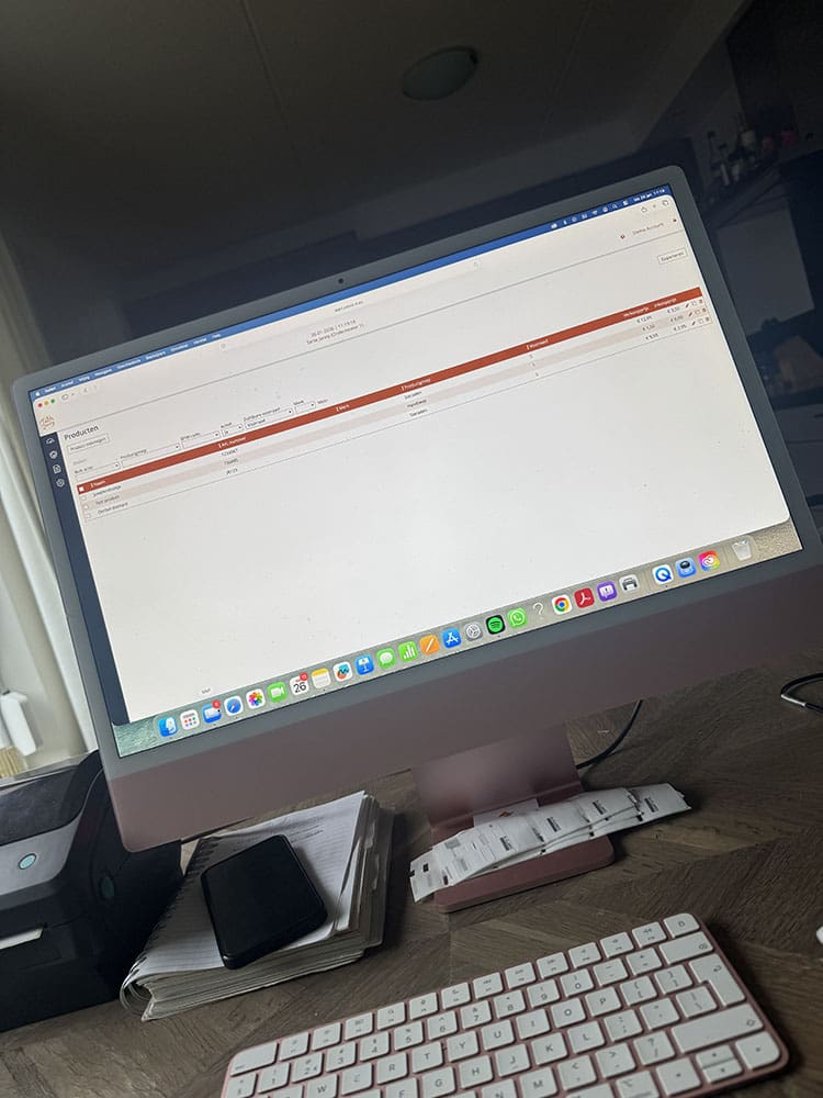 Die dag zat ik veel achter de computer: producten invoeren en prijzen.