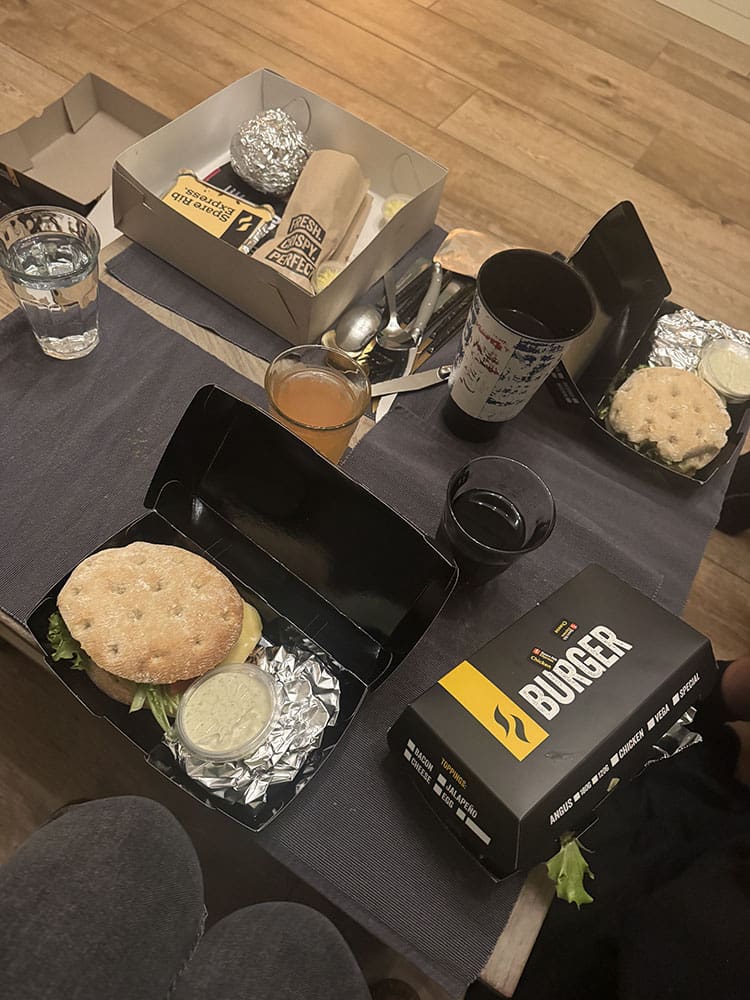 Thijs kwam thuis van het padellen en heeft eten besteld voor ons, lekker!