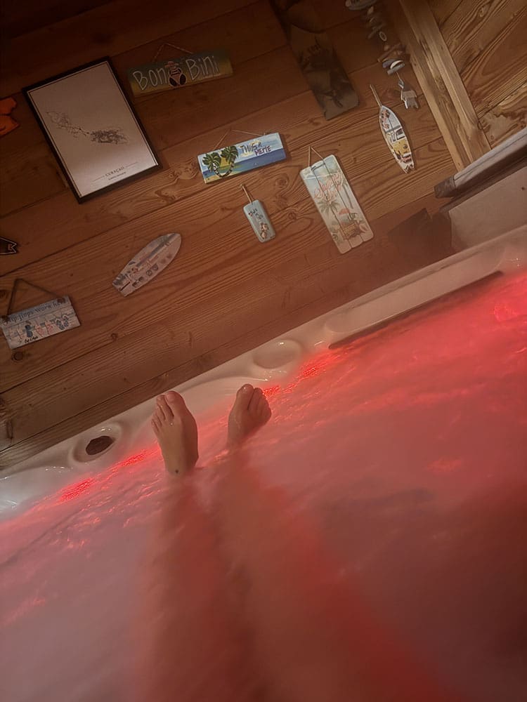 En na het eten gingen we samen even in de jacuzzi.