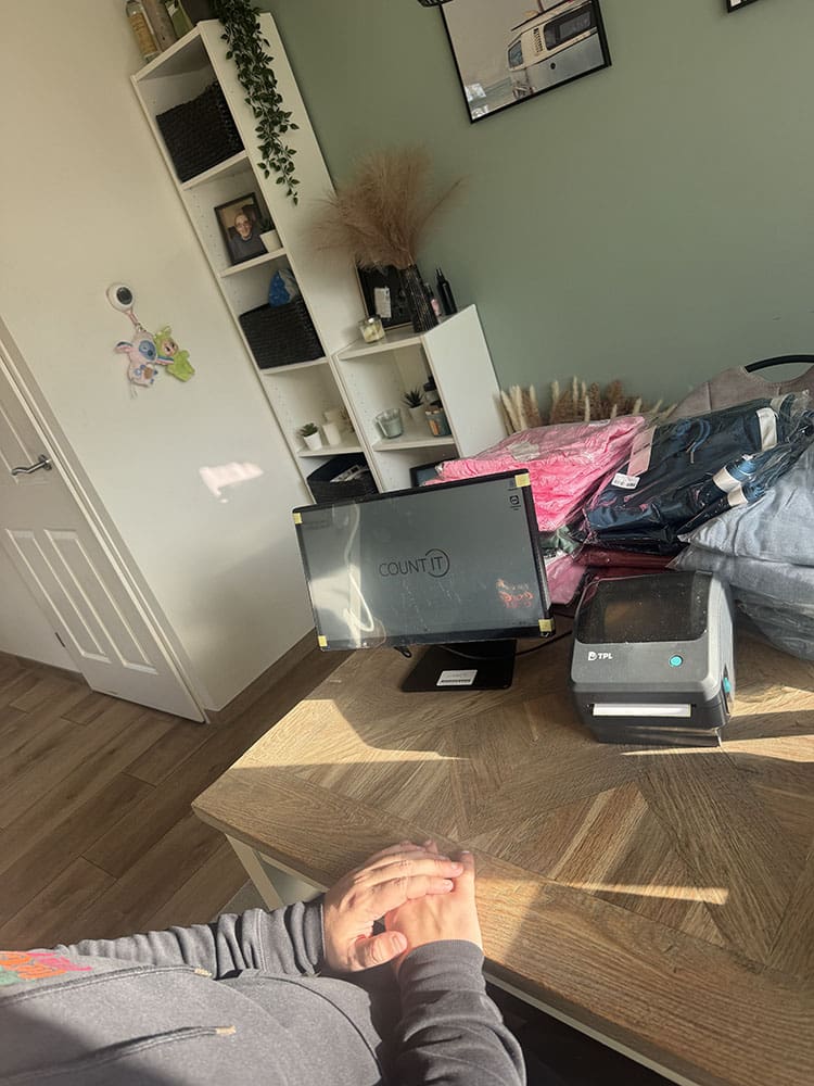 En we hebben ons kassasysteem aangesloten. Eens kijken hoe dat scherm werkt en of we kunnen printen ermee.