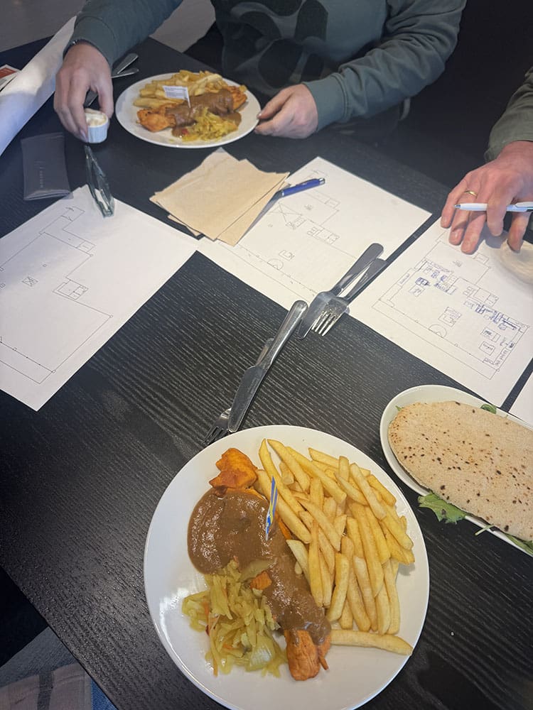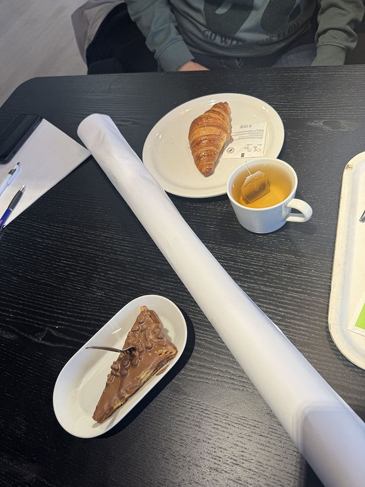 Daarna hebben we ons een mooi tafeltje bij de Ikea uitgezocht. Wat lekkers en de vergadering kan starten.