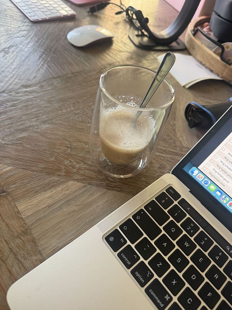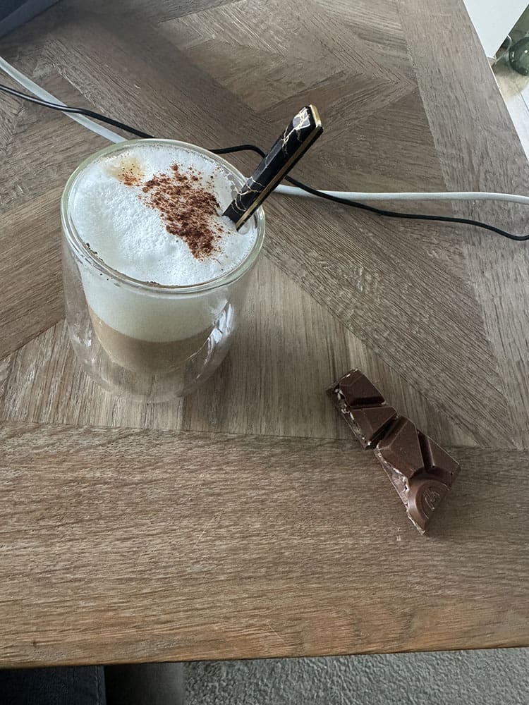 Donderdag (22 januari). Na het sporten heb ik koffie gezet. Had alleen iets teveel melk gebruikt, dan zet ik nog een mini kopje, haha.