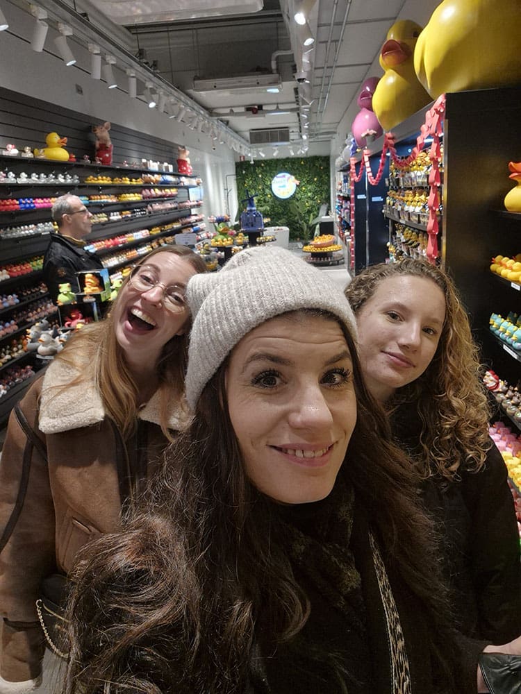 We zijn nog wat meer winkels in de Kalverstraat in geweest. Deze winkel had allemaal badeendjes, zo grappig.