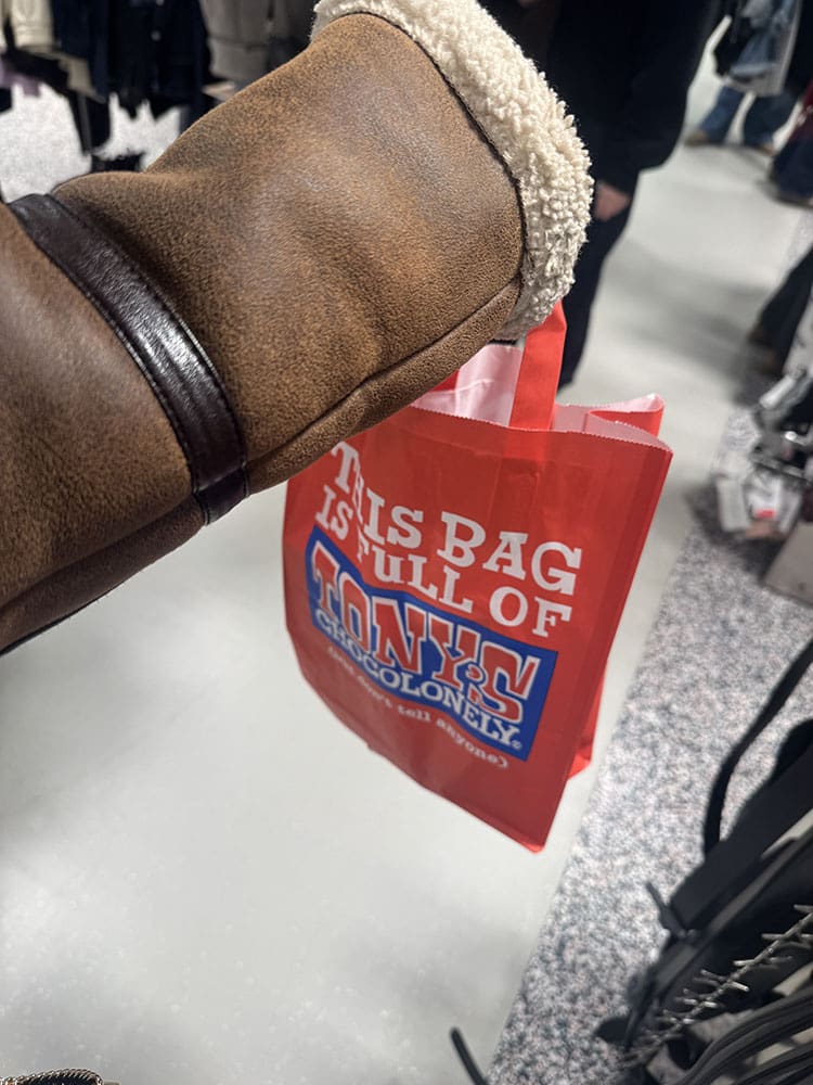 Bezig voor Instagram en de Tony Chocolonely proeven. Lekker! Daarna kwamen Kim en Jolynn bij mij.