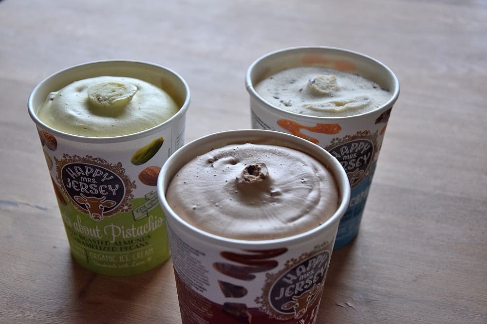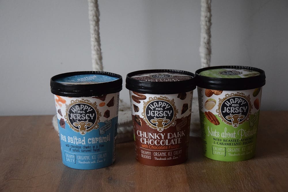 Hoi! Happy Mrs Jersey ijs. Een nieuw merk op de ijsmarkt. We kennen allemaal de beroemd lekkere Ben en Jerry’s, maar er is nu wat anders. Happy Mrs Jersey ijs! En ik als ijsliefhebber vind dat best wel leuk. Nieuw merk, nieuwe smaken en dat is iets wat ik graag wil testen! Happy Mrs Jersey ijs is gemaakt van de melk van Jersey koeien. Dit zijn koeien die veel buiten lopen . Het ijs is dan ook lekker romig. Nou, dat klinkt allemaal heel goed. Ook al is het een beetje winter aan het worden, maar ijs gaat er bij mij altijd in. En zeker van een nieuw merk. Lets test it!