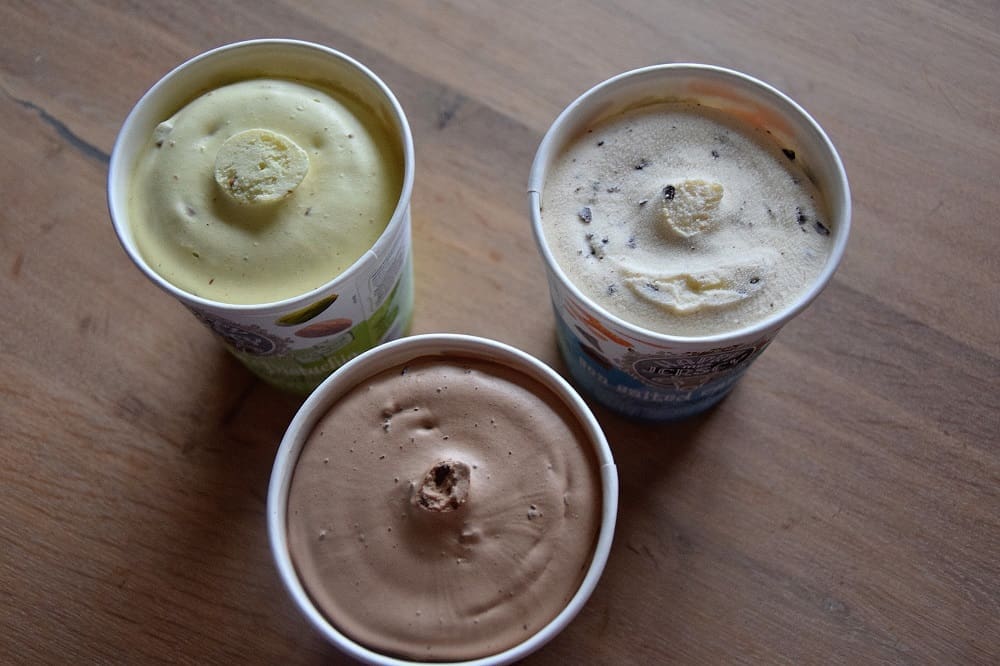 Dan door naar de Nuts About Pistachio. Deze leek mij in eerste instantie niet zo heel lekker. Ik hou niet zo van nootjes en pistache ijs. Maar ik heb mij vergist. Ik vond dit ijs wel lekker! De noten smaak overheerst niet heel erg, net als de pistache smaak. Je proeft wel duidelijk pecan nootjes en dat is best lekker. Het is niet het zoetste ijs en de nasmaak is wat bitter. Maar niet verkeerd.