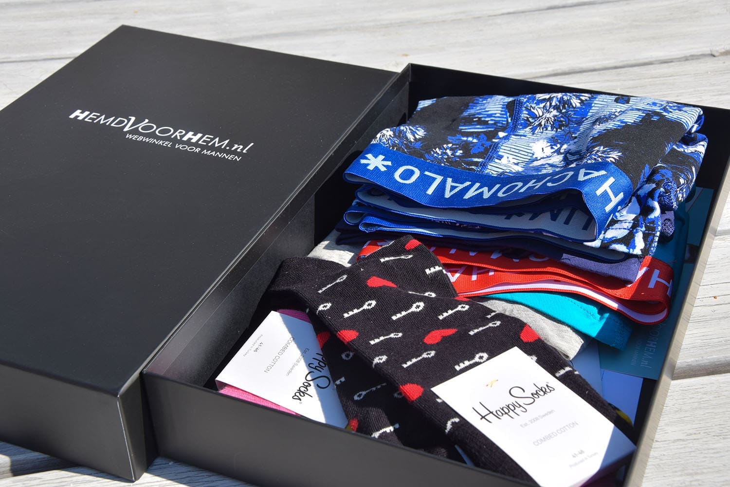 Hemd Voor Hem is dé online webshop voor mannen. Alles wat een man aan kleding nodig heeft is hier te vinden. Ze zijn gespecialiseerd in strijkvrije overhemden, maar hebben daarnaast alles wat een man nog meer nodig heeft. Hoe handig is dat?! Aangezien mijn vader en vriendje beide wel wat nieuwe onderbroeken konden gebruiken heb ik met mijn moeder wat vrolijke en leuke onderbroeken uitgezocht. Daarnaast kwam ik Happy Socks tegen. Voor Thijs vond ik dit wel een leuk idee. Thijs houdt wel van vrolijke en grappige sokken.