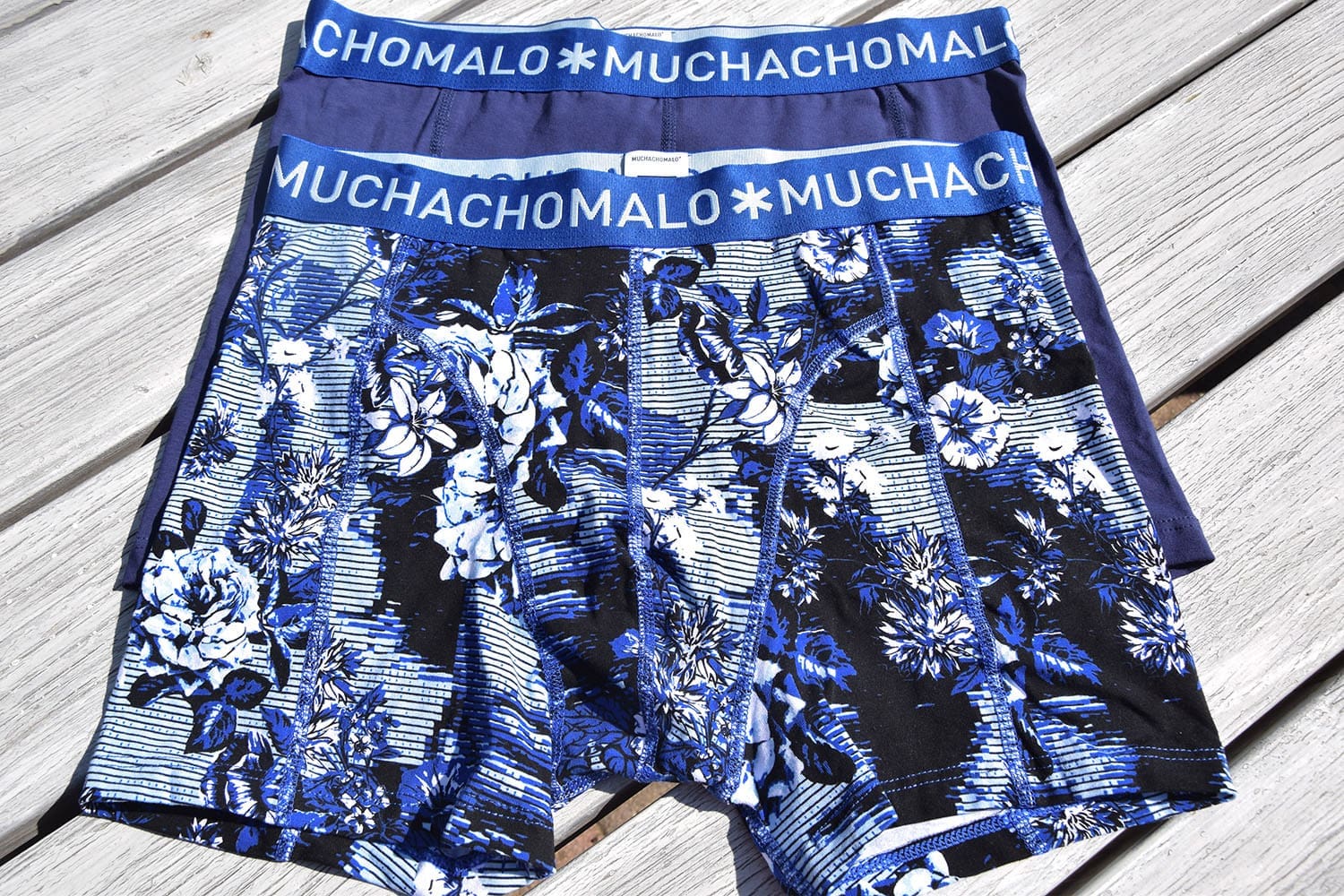 Maar laten we beginnen met de onderbroeken. Voor beide hebben we een leuk setje onderbroeken van het merk: Muchachomalo. Ik had nog nooit van dit merk gehoord, maar deze onderbroeken voldoen aan de eisen van de mannen: stretch, niet te lang en niet te kort. Voor mij vader hebben we een grijze en blauwe en voor Thijs twee blauwe. Waarvan een met een vrolijk printje. De onderbroeken zitten fijn volgens de mannen en hebben een zachte band aan de bovenkant. Dat voelt hee fijn!
