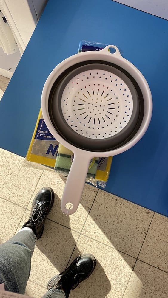 Ik reed daarna naar de Action. Ons vergiet was stuk.