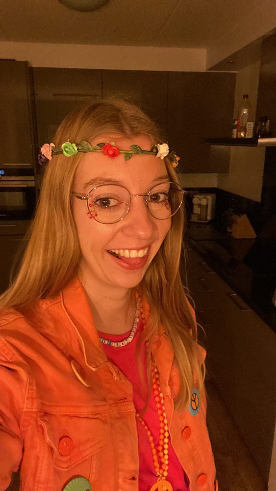 Vrijdag (17 februari). Carnaval op school. Ik zat in de organisatie en ging op tijd naar school. Outfit is klaar!