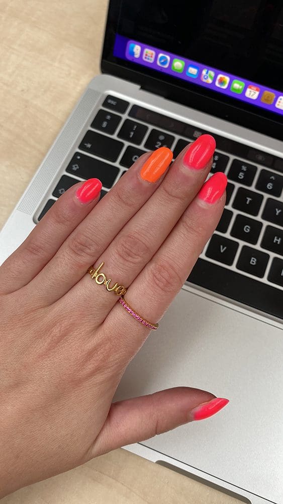 Ik bleef op school want we hadden daarna afscheid van een collega. Ik werkte wat tussendoor op mijn computer. Mijn nagels zijn trouwens lekker vrolijk.