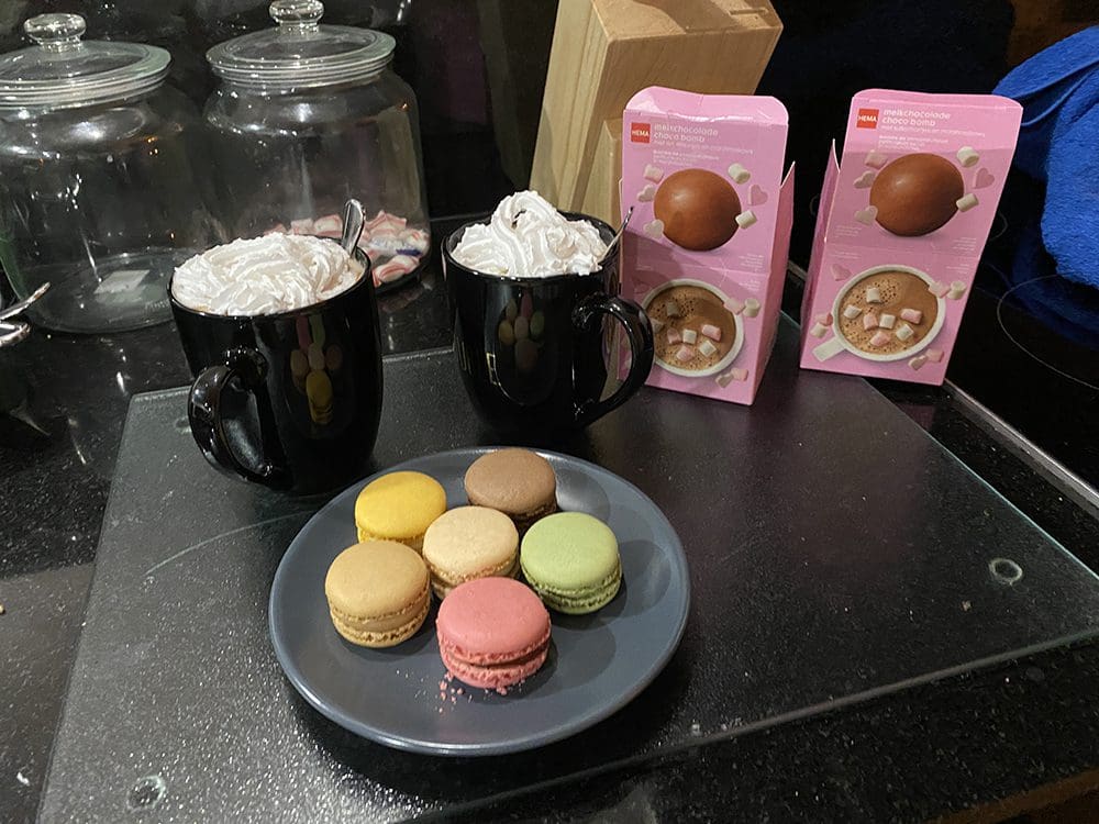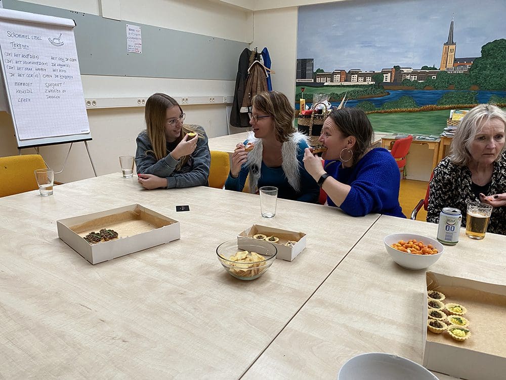 Kletsen en genieten van de hapjes. We waren allemaal wel moe na deze dag.
