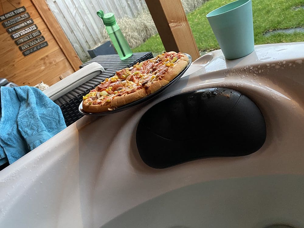Thuis hebben we pizza warm gemaakt en deze opgegeten in de jacuzzi, haha.