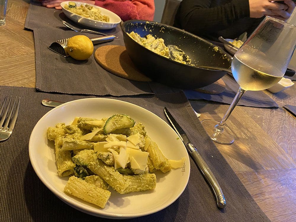 Na het eten maakten Thijs en ik een wandeling. Daarna opwarmen in de jacuzzi.